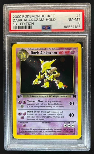 2000 Pokemon Team Rocket First Edition Dark Alakazam Holo #1/82 PSA 8