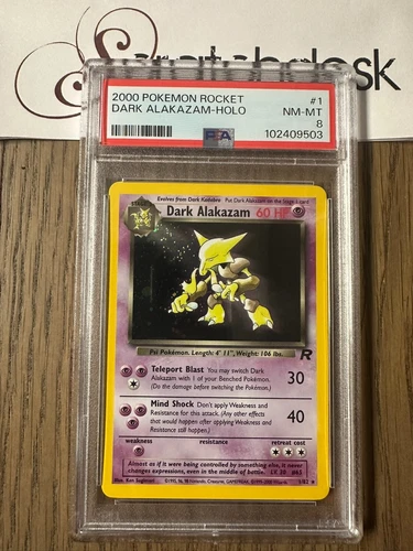 PSA 8 - Pokemon DARK ALAKAZAM 1/82 - TEAM ROCKET - NEAR MINT
