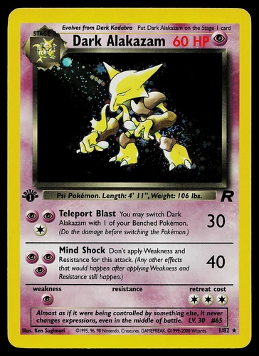 Dark Alakazam 1/82 1st Edition Team Rocket Holo Rare Pokemon Card WOTC