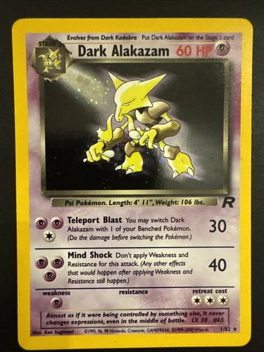 Dark Alakazam 1/82 1st Edition Team Rocket Holo Rare Pokemon Card WOTC