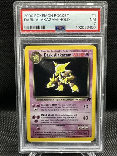 2000 Pokemon Team Rocket Dark Alakazam 1st Ed 1/82 PSA 7
