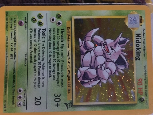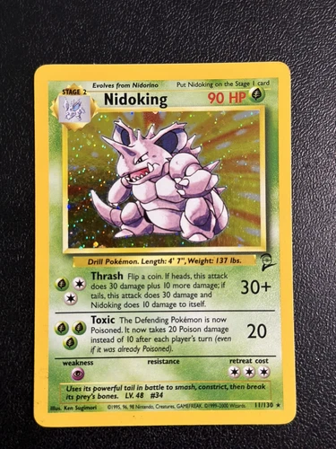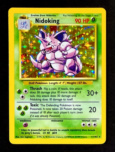 Pokémon TCG Nidoking Base Set Holo Unlimited Rare Card 11/102 + Base + Stage 1