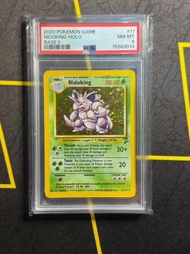 Nidoking 11/102 Holo Rare Pokemon TCG Base Set 2 - PSA 8 NM-MT