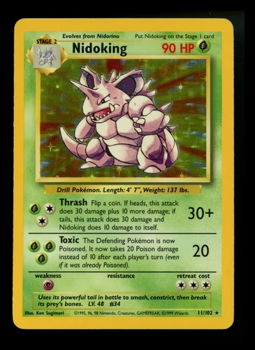 Pokémon TCG: Holo Rare Nidoking 11/102 - Base Set - Curling Card, Unlimited #1