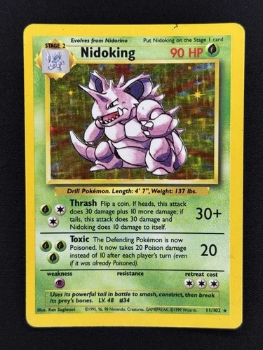 Rare, Holo Pokémon Base Set Nidoking 11/102 (Shadowed, Unlimited, English)