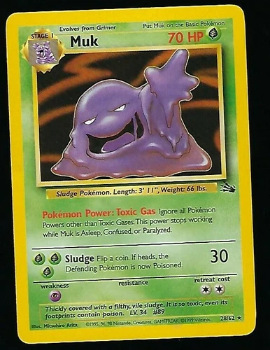 Pokémon TCG Muk Fossil 28/62 Regular 1999-2000 Wizards Base Set Copyright Rare